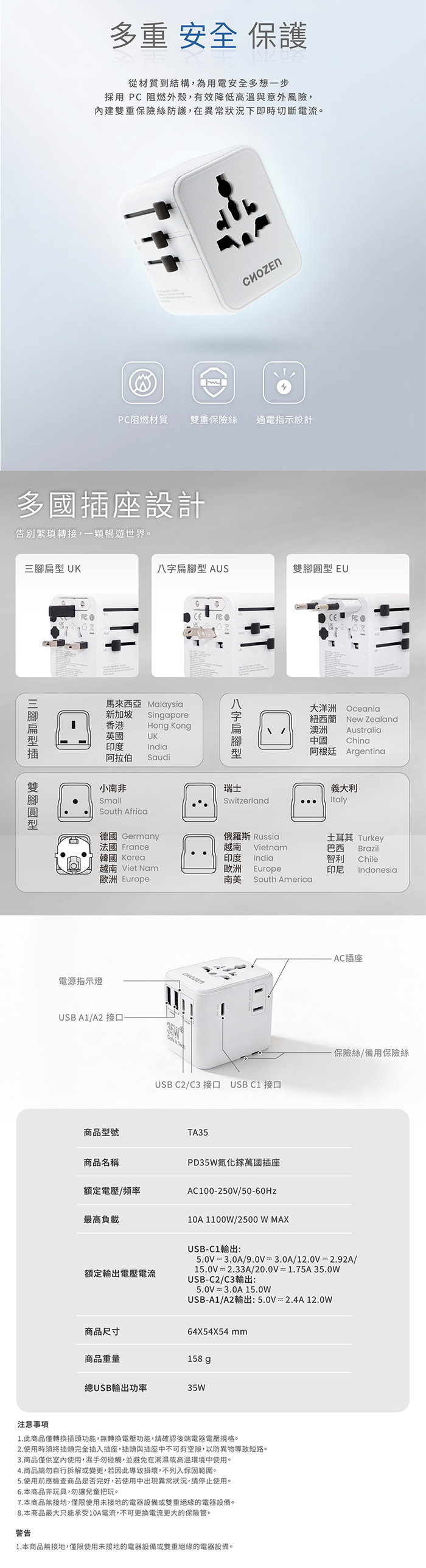 3. 多種國際標準插頭,國際旅遊一應俱全。