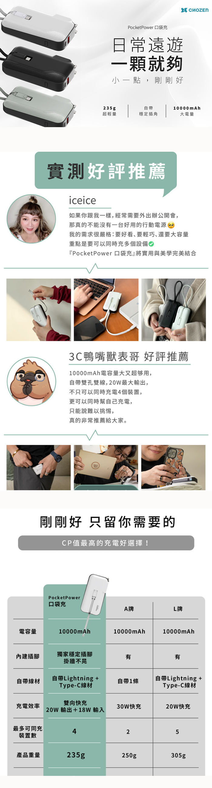 2.10000mAh大容量|可充手機約2次,遠遊不怕沒電