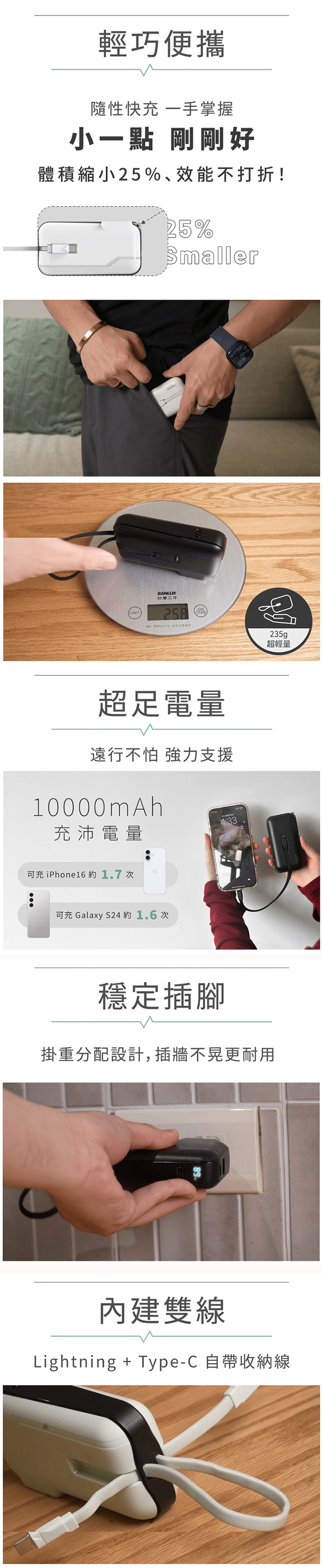 5.雙線內建|Lightning + Type-C 自帶收納線,隨插即用