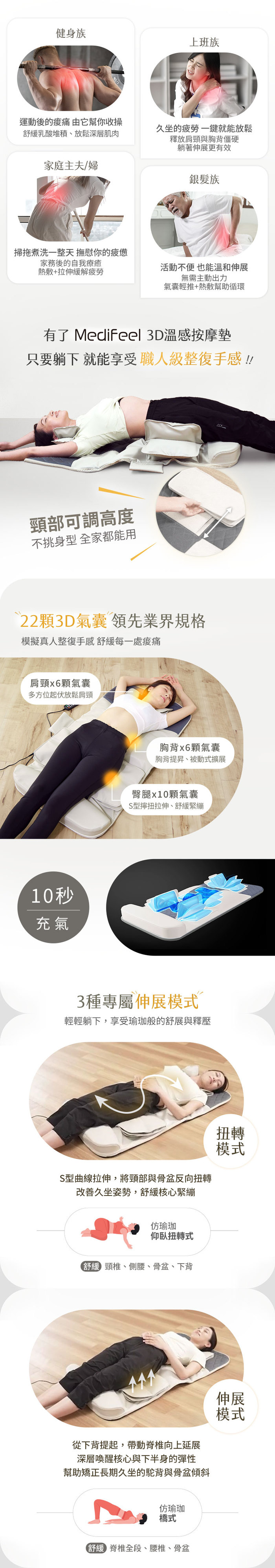 ◆業界最多22顆氣囊,手掌式包覆按摩,給你最溫暖的體驗。