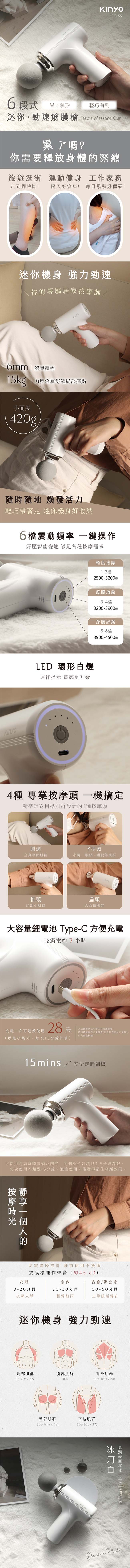 KINYO 6段式迷你勁速筋膜槍(共附4種按摩頭) FG-55