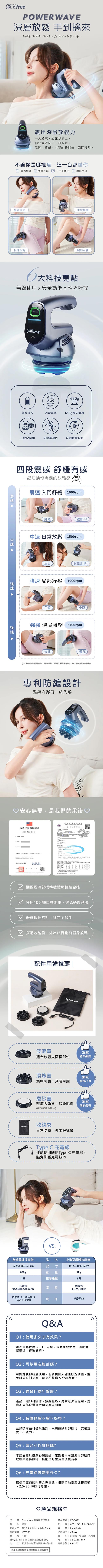 Comefree 四段變速無線震波按摩儀(附收納袋) CF-3671