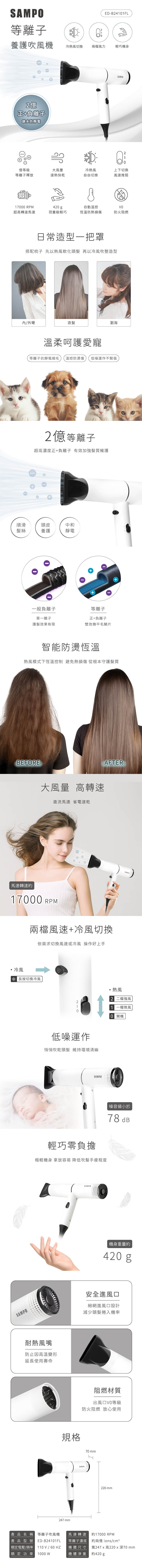 SAMPO聲寶 大風量等離子吹風機 ED-B24101FL