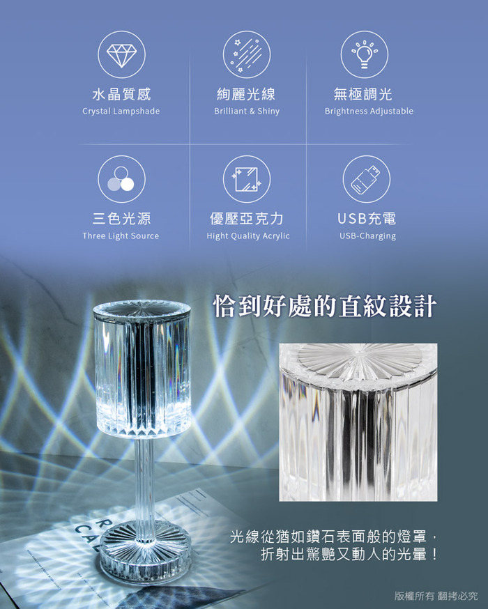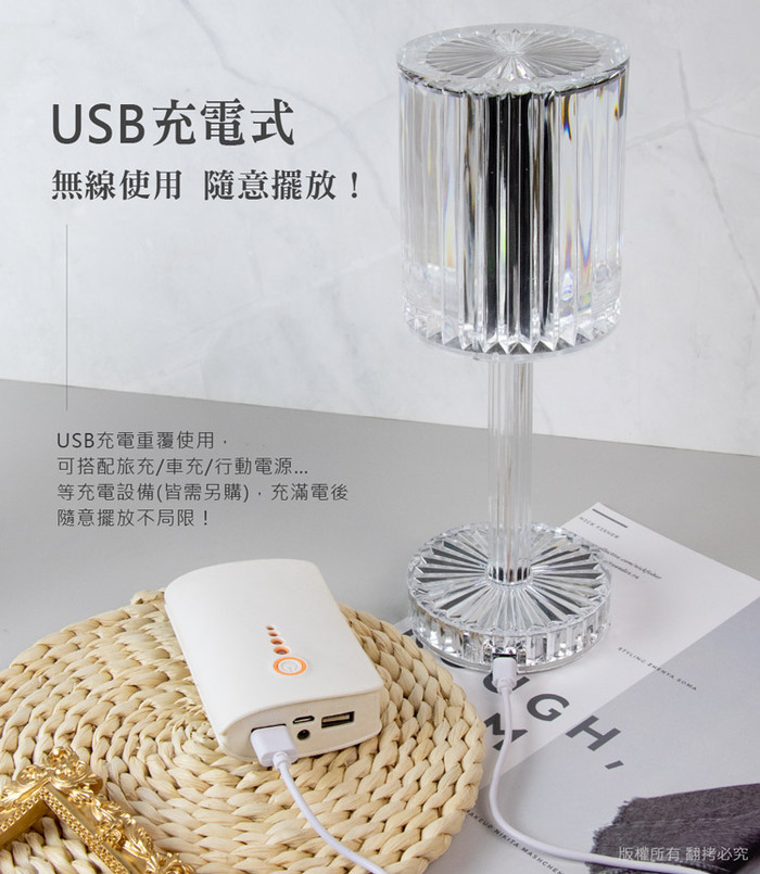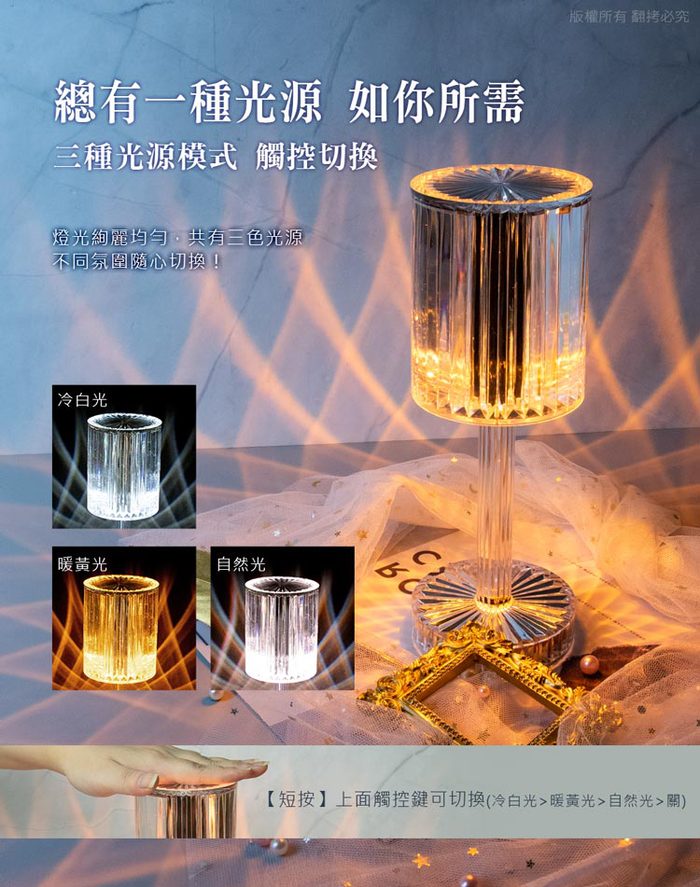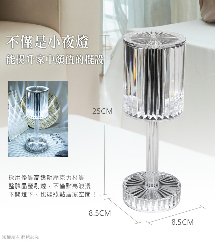 .商品名稱:鑽石光影 USB充電式 水晶質感氛圍燈(觸控式/三色光)