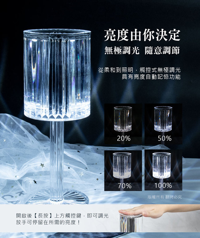 高透壓克力融入水晶高質感設計,結合小夜燈功能,