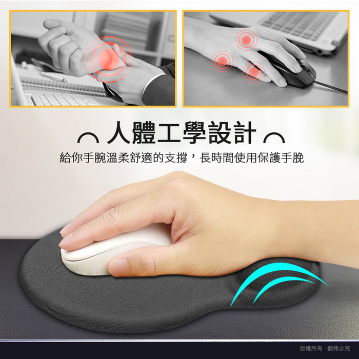 減少手腕的壓力,使用滑鼠時更方便移動。