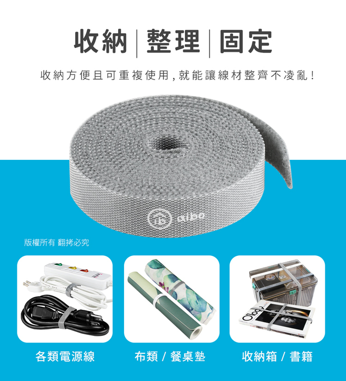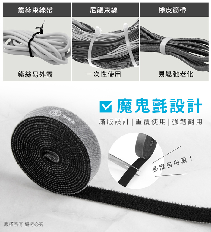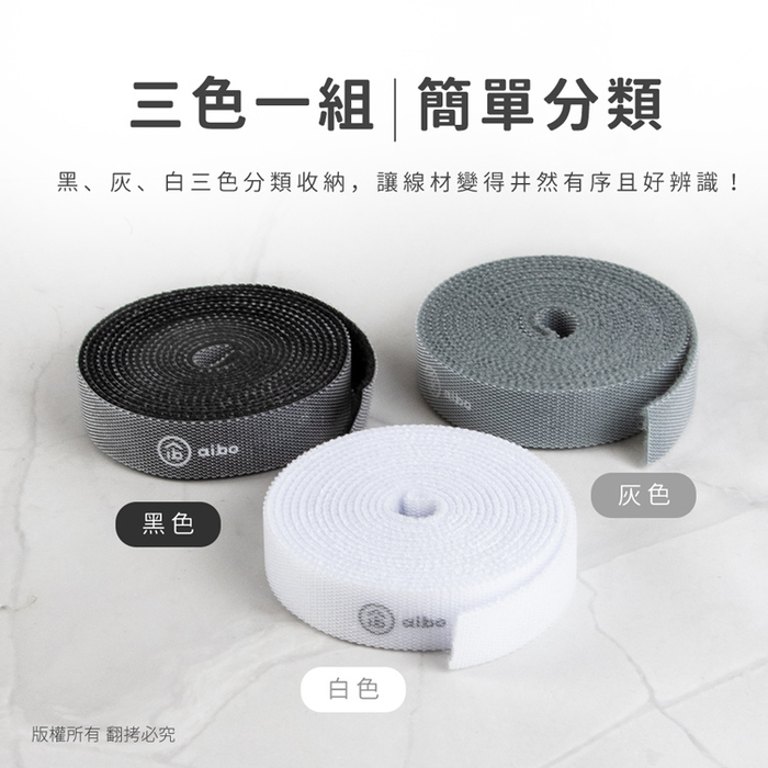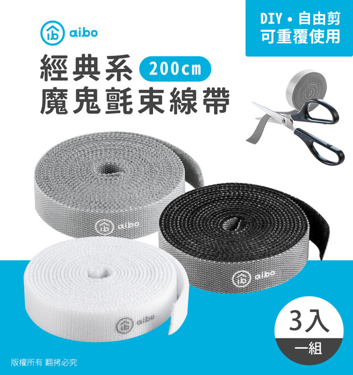 .商品名稱:aibo 經典系 200cm DIY 魔鬼氈束線帶-3入組
