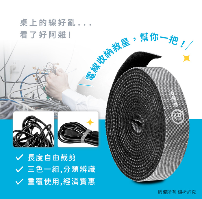 可將線材收納整齊,幫助創造更乾淨的空間,可依需求長度自行剪裁。