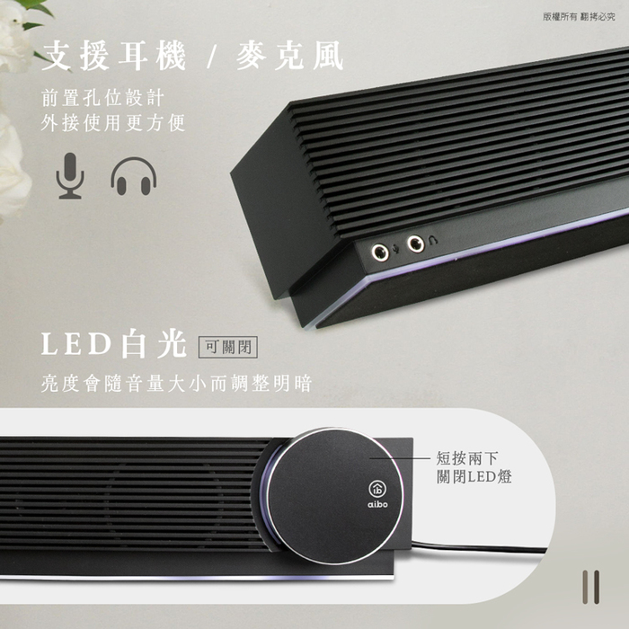 .商品名稱:aibo USB單件式雙聲道 立體聲藍牙聲霸喇叭