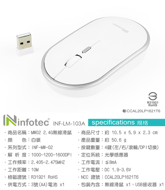 .商品名稱:infotec MW02 2.4G無線光學滑鼠