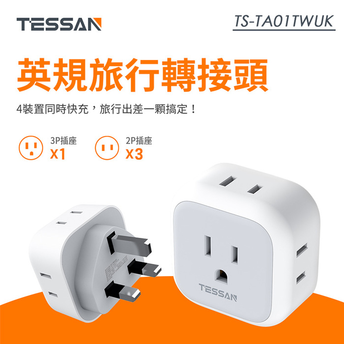 TESSAN 英規旅行轉接頭(3P插座x1+2P插座x3)