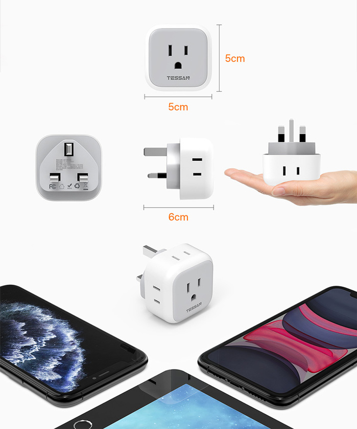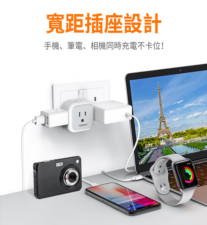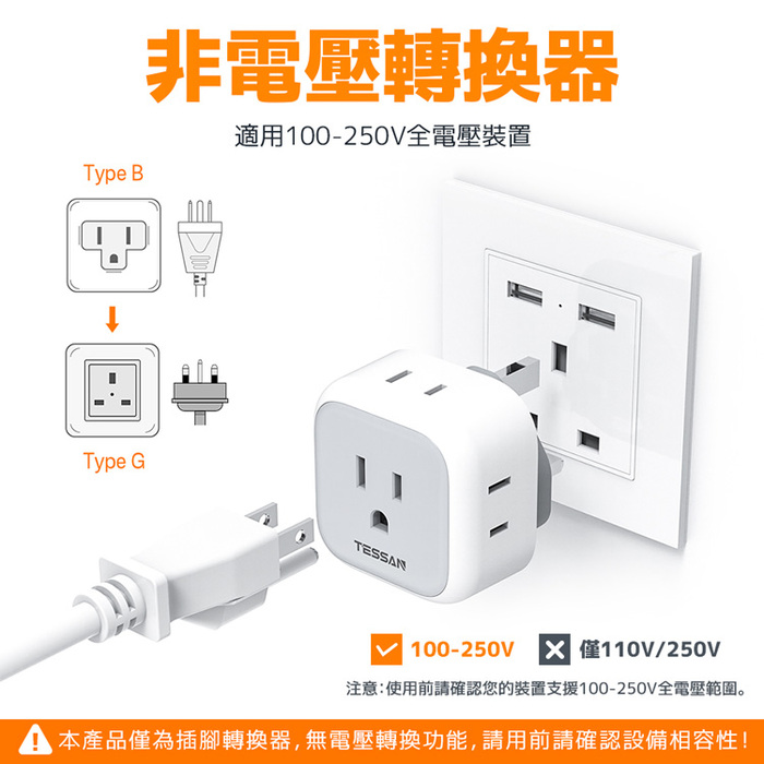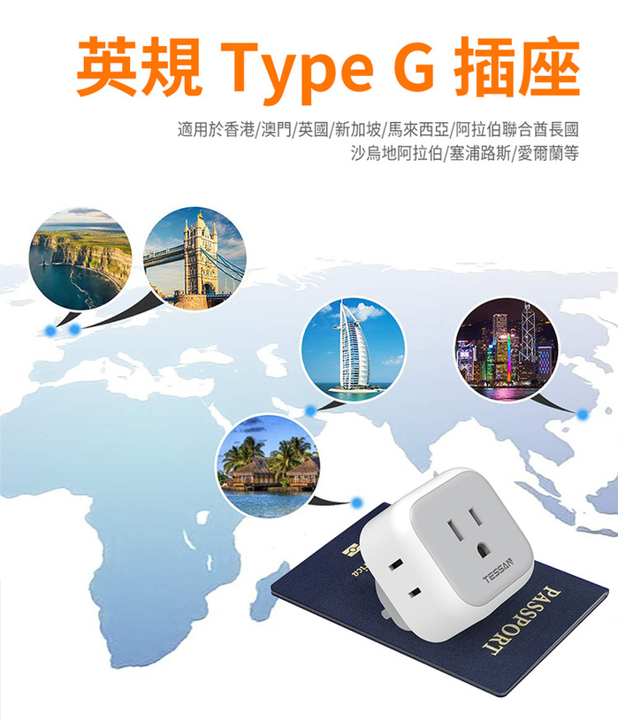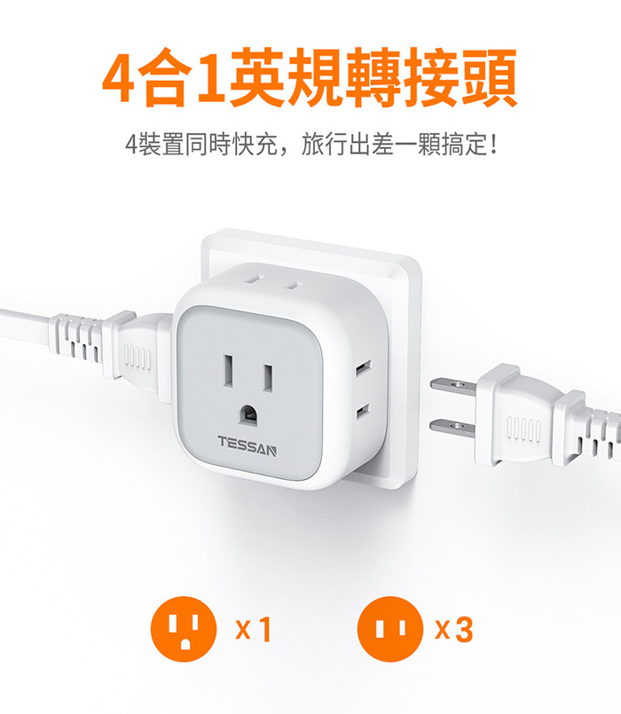.品 名:TESSAN 英規旅行轉接頭(3P插座x1+2P插座x3)