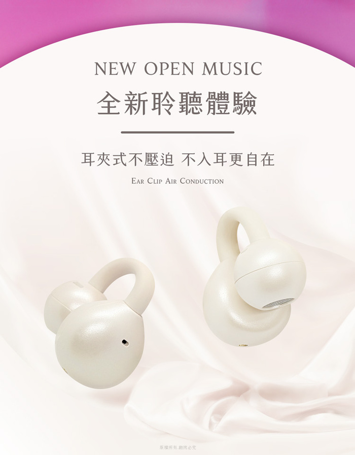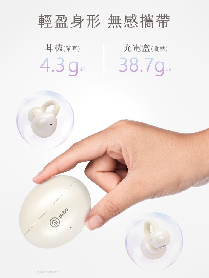 耳夾開放式配戴,4.3g輕量化設計,輕鬆配戴零負擔