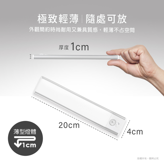 .商品名稱:aibo 三色光 超薄長效續航 充電磁吸式 LED感應燈(20cm)