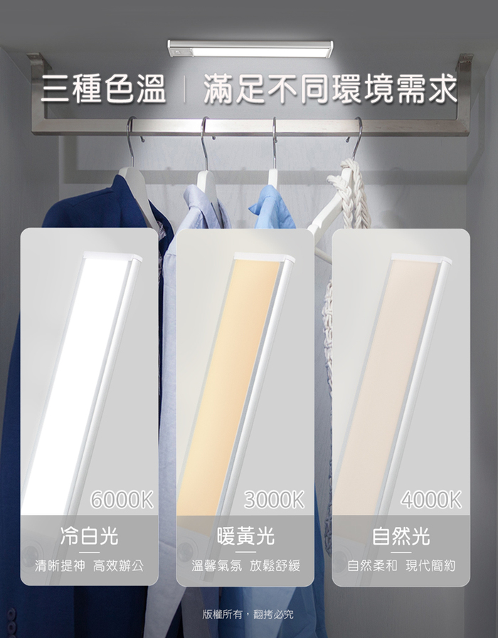 .照明色溫:冷白光6000K、暖黃光3000K、自然光4000K