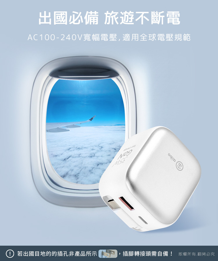 同時適用AC100V-240V世界國際電壓,飛行無阻全球通用!