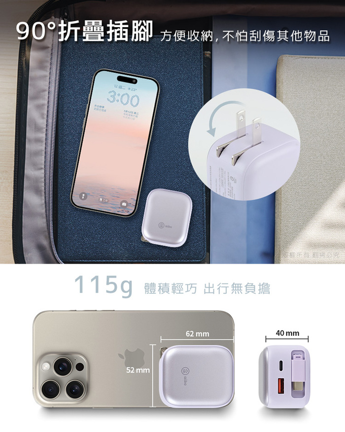 --智慧電流分配,折疊插腳方便收納,適用全球電壓規範--