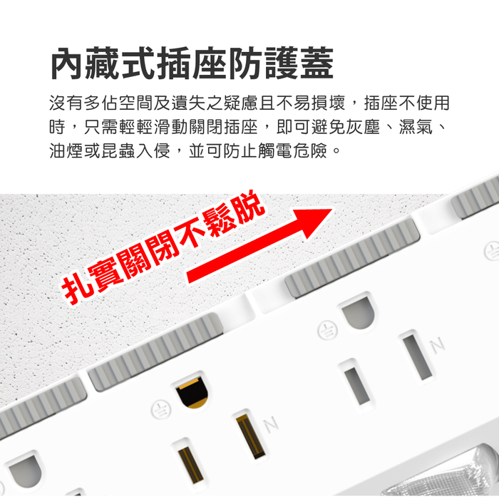 【內藏式插座防塵蓋設計!好用!!不佔空間】