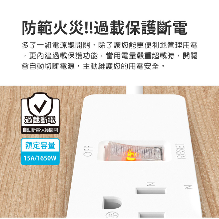 更內建過載自動斷電保護功能,主動維護您的用電安全。