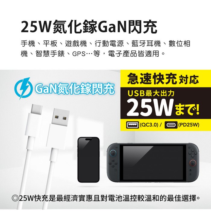 .USB充電最大輸出為25W,請避免超載使用以免機件故障。