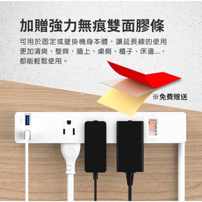 可用於固定或壁掛機身本體,讓延長線的使用更加清爽、整齊,牆上、桌側、櫃子、床邊…
