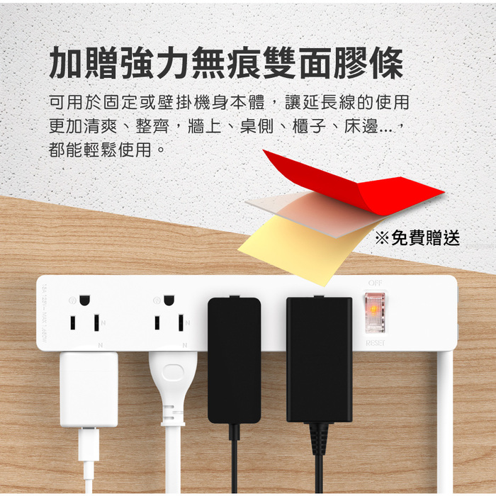 可用於固定或壁掛機身本體,讓延長線的使用更加清爽、整齊,牆上、桌側、櫃子、床邊…