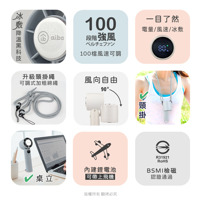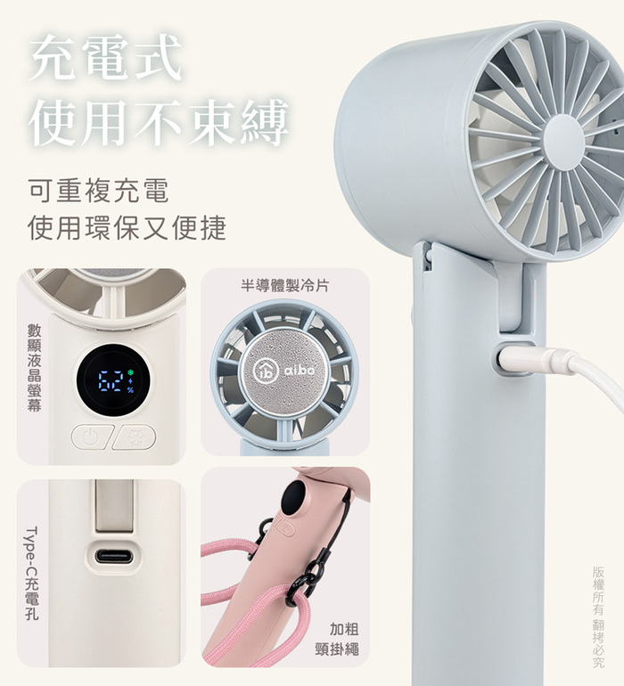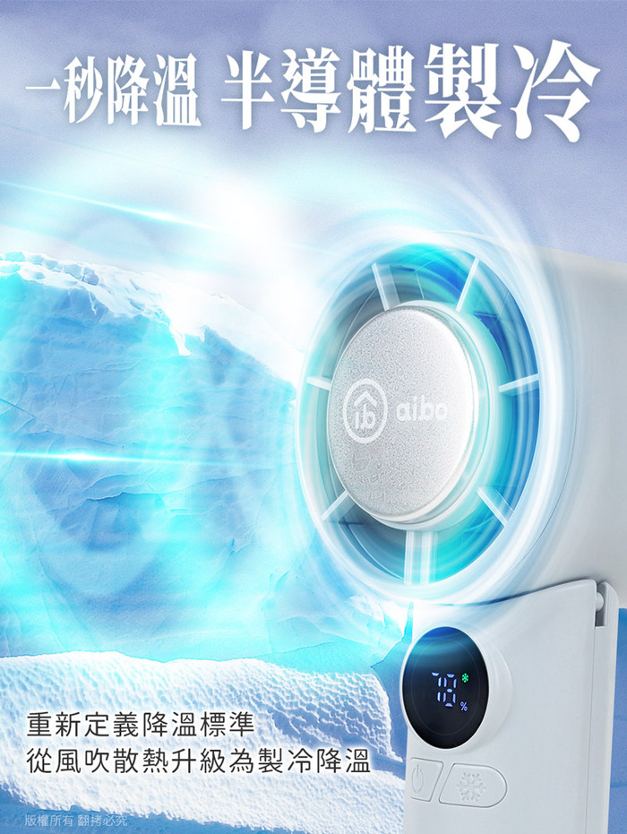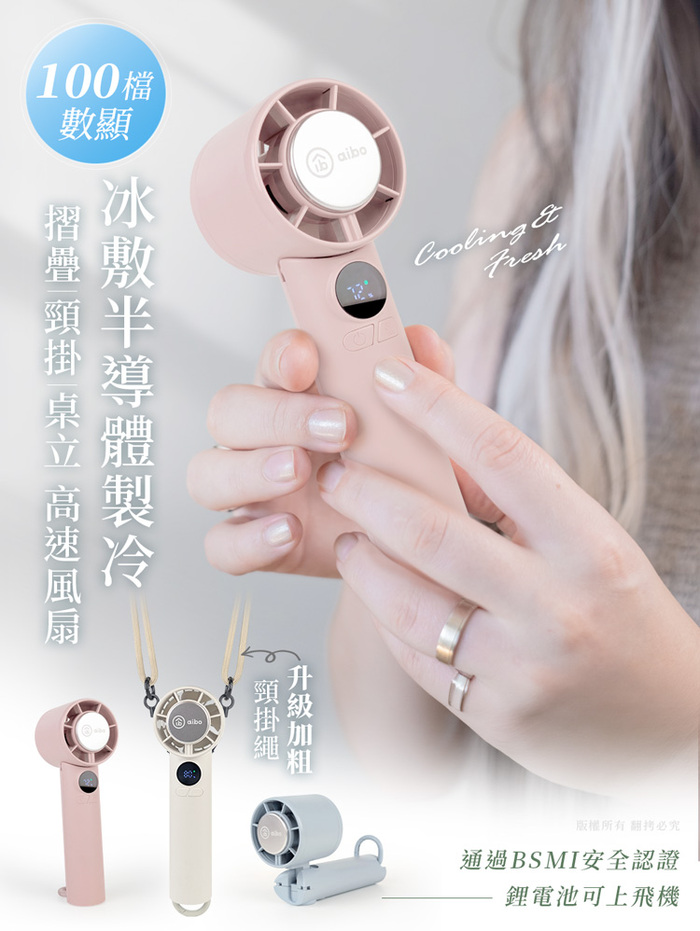 .產品名稱:aibo 扣環式冰敷折疊頸掛 100檔數顯高速手持風扇