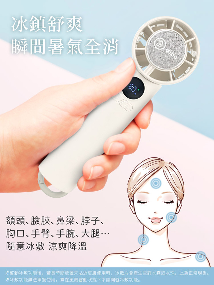 aibo 扣環式冰敷折疊頸掛 100檔數顯高速手持風扇★降溫冰敷黑科技★
