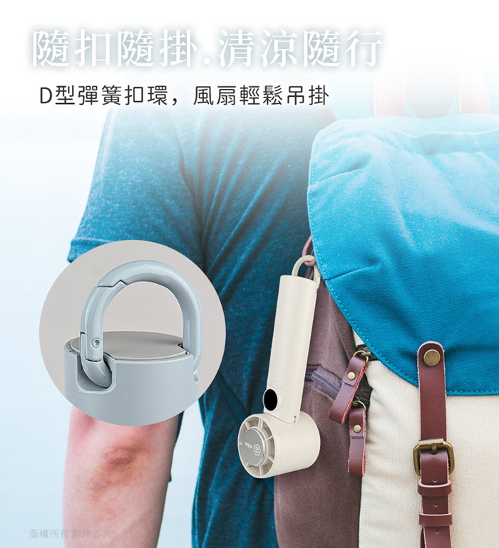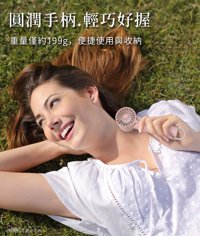 風扇可90°調整風向(後仰90°),後仰時搭配頸掛繩,行走、騎車時掛於胸口,