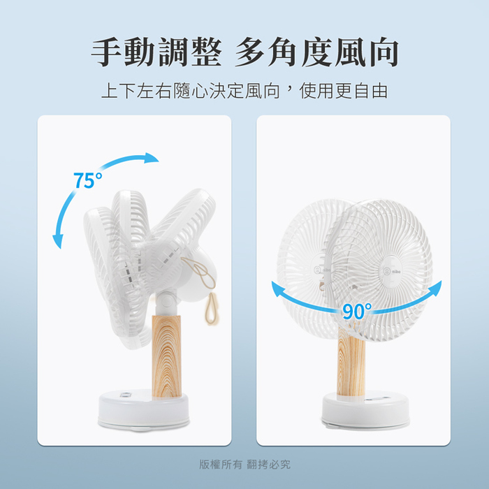 ◆風扇可手動上下約75°,左右約90°調整,吹出最舒適的風向