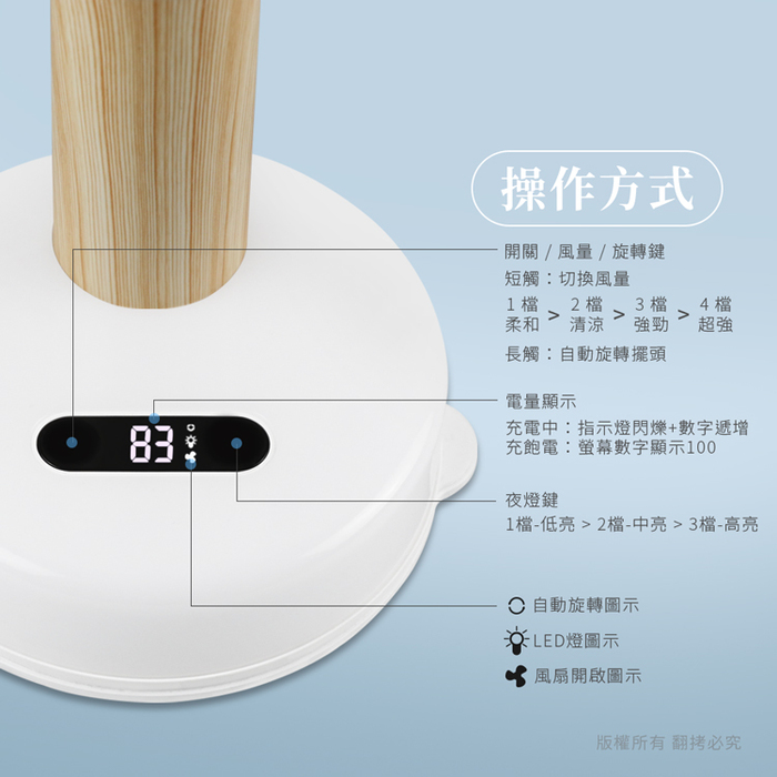 ※風扇與LED小夜燈功能,可獨立使用