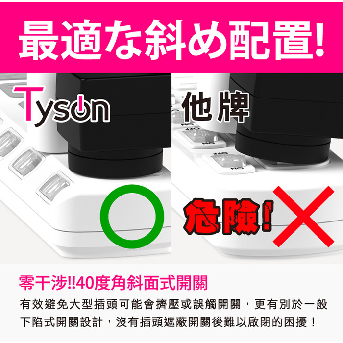有效避免變壓器、充電器之類大型插頭可能會擠壓或誤觸開關,