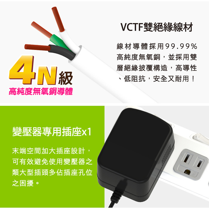 - .並非每樣電器都適合使用延長線轉接,請詳細閱讀該電器使用說明後,