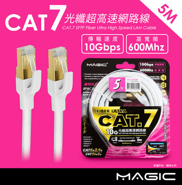 .商品名稱:MAGIC Cat.7 SFTP圓線 26AWG光纖超高速網路線(專利折不斷接頭)