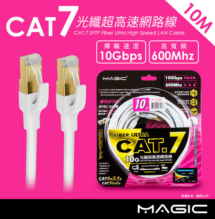 .商品名稱:MAGIC Cat.7 SFTP圓線 26AWG光纖超高速網路線(專利折不斷接頭)