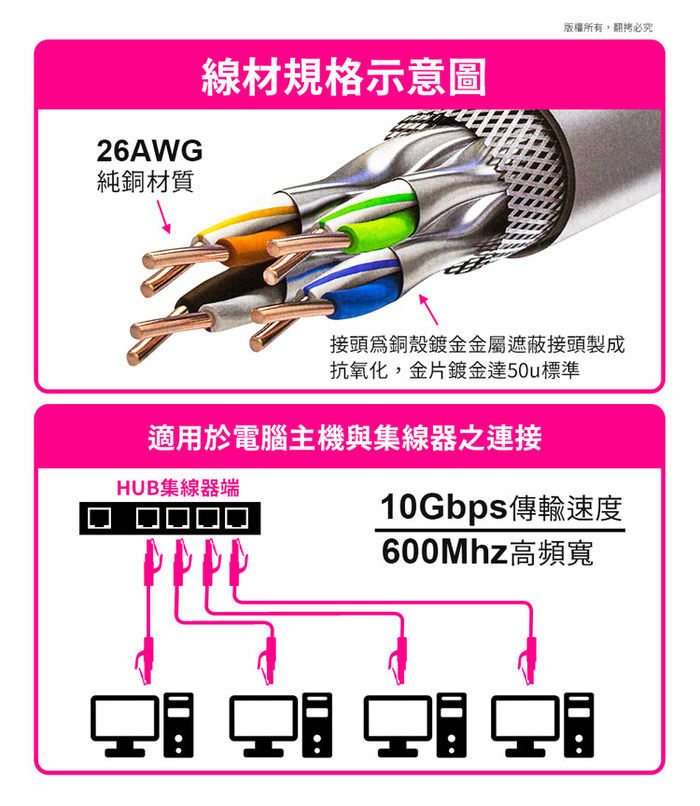 --四對對絞多股雙絞線,純銅線材雙重屏蔽,台灣製造品質保障--