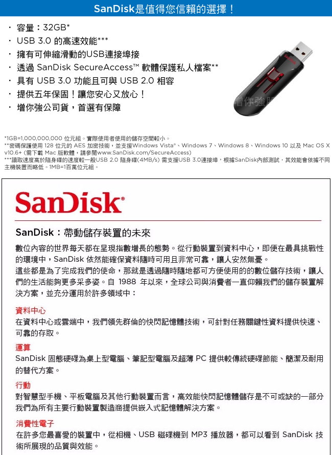 【 SanDisk CZ600 32GB USB隨身碟 公司貨】