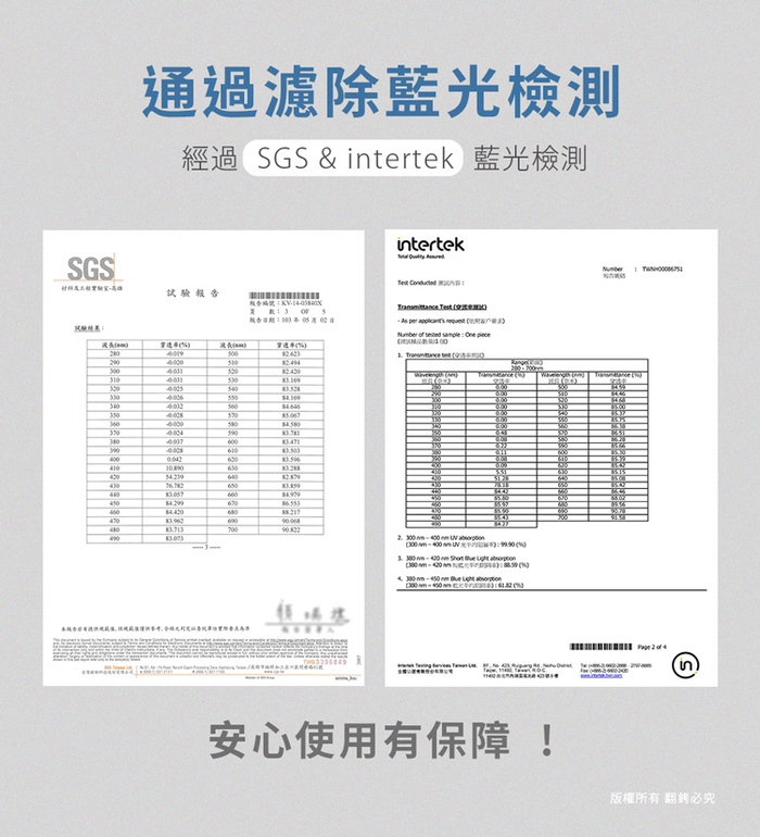 並經SGS、intenek濾藍光檢驗,台灣製造品質有保證!