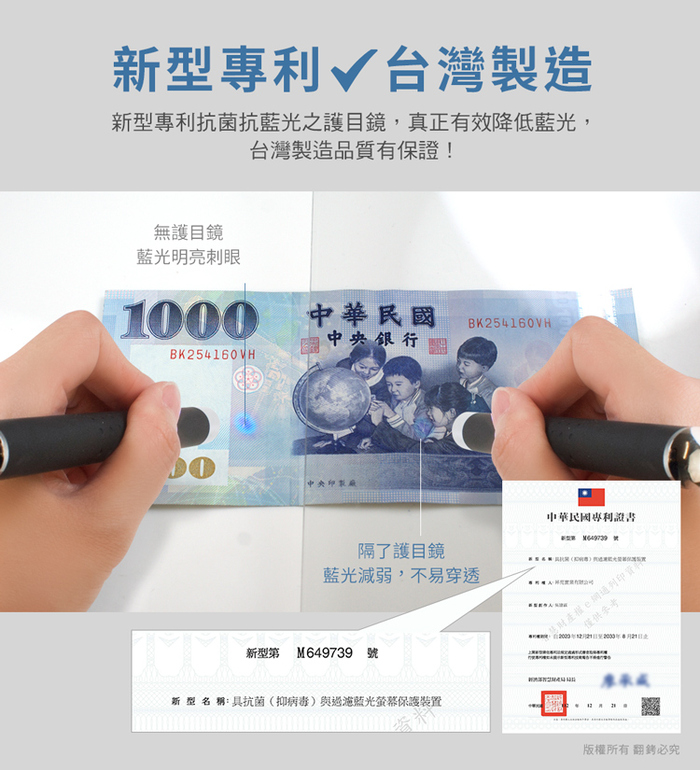 ◆擁有抗菌抗藍光新型專利