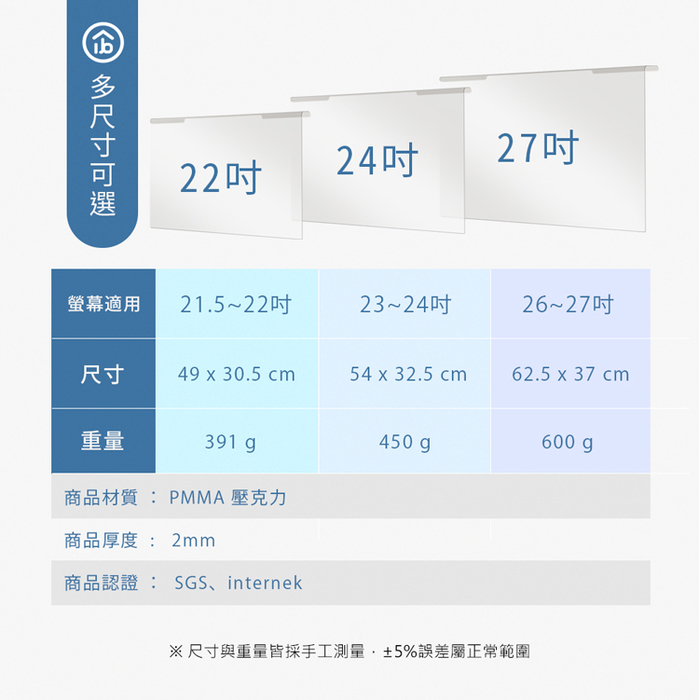 .適用尺寸:26~27吋