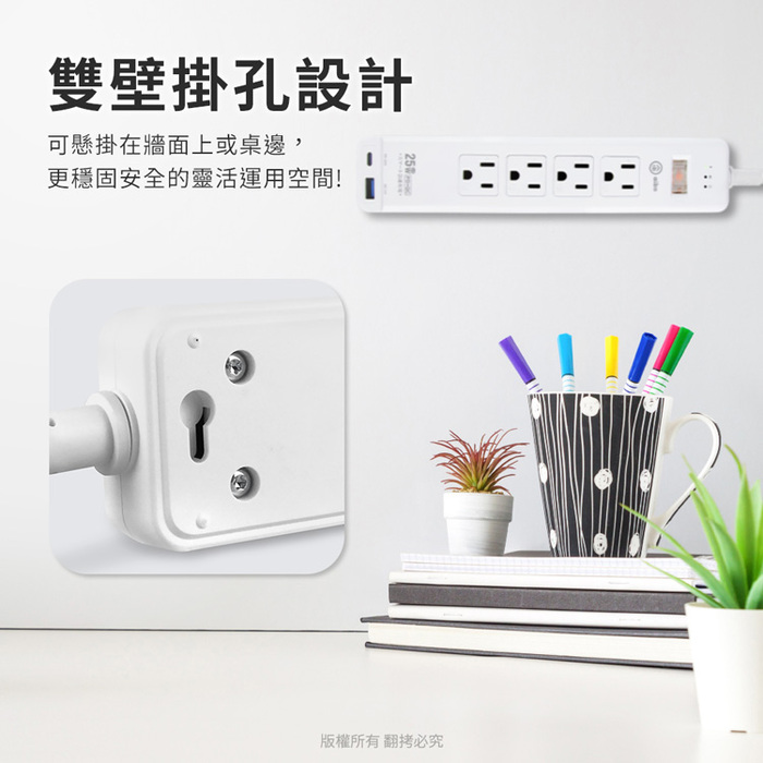 --90°平貼式插頭,下凹式總開關控制,PD+QC多功能充電--