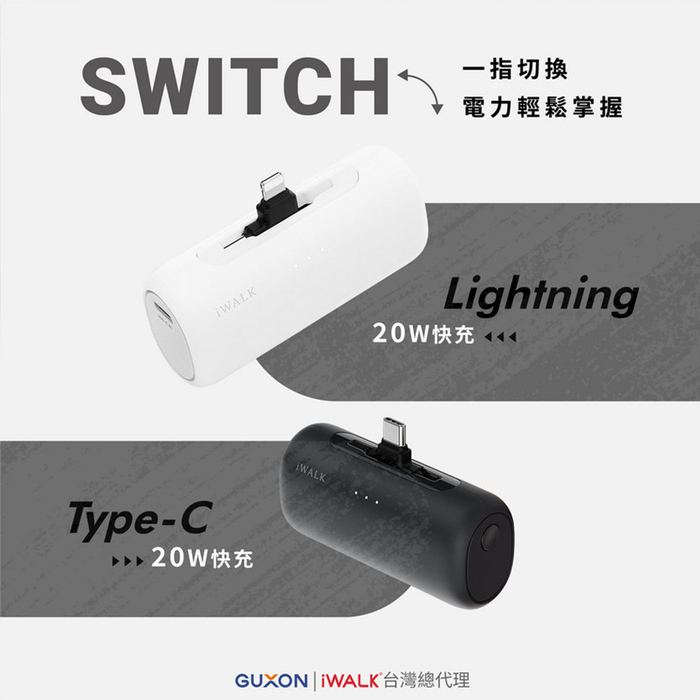 iWALK 2026年全新 SWITCH切換式行動電源兼容Lightning、Type-C 兩種接頭;切換方便,一機兩用