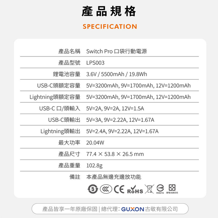 ◎Type-C輸出: 5V=3A,9V=2.22A, 12V=1.67A
