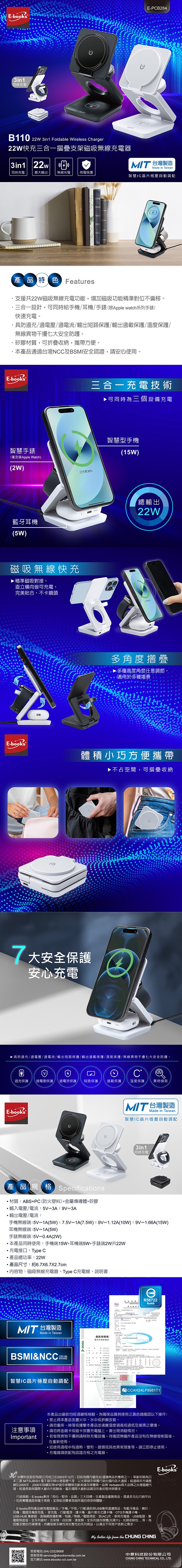 .本產品同時使用:手機端15W+耳機端5W+手錶端2W共22W