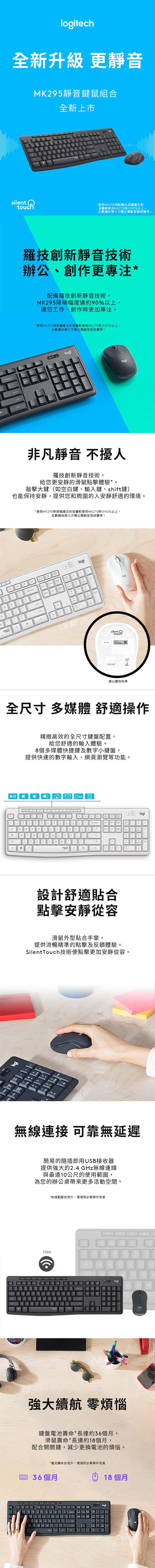 羅技 靜音鍵鼠組(石墨灰) MK295