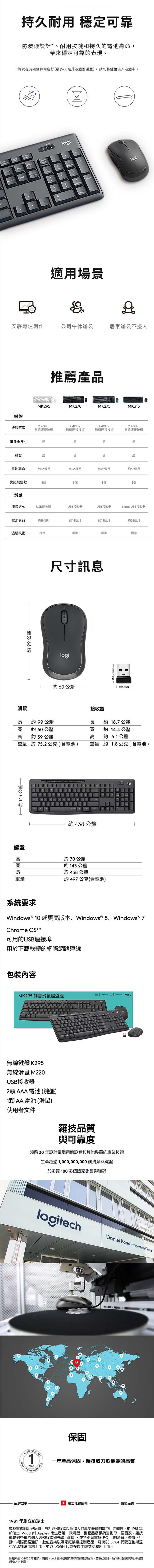 配件:USB接收器、2顆AAA電池(鍵盤)、1顆AA電池(滑鼠)、使用者文件