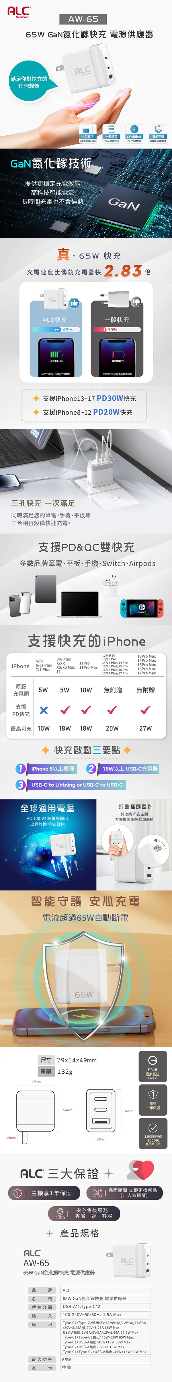 ※智能守護,安心充電(註:電流超過65W自動斷電)
