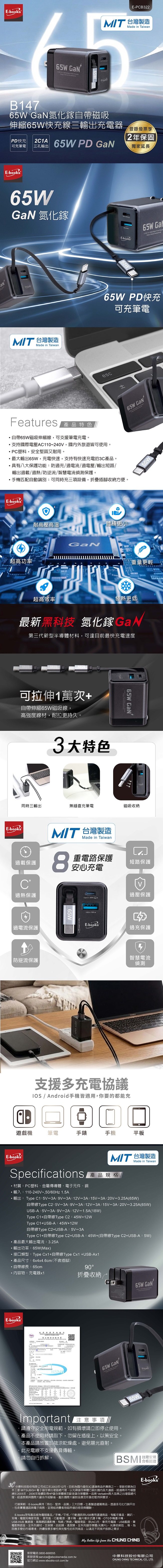 .輸出功率:65W(Max)