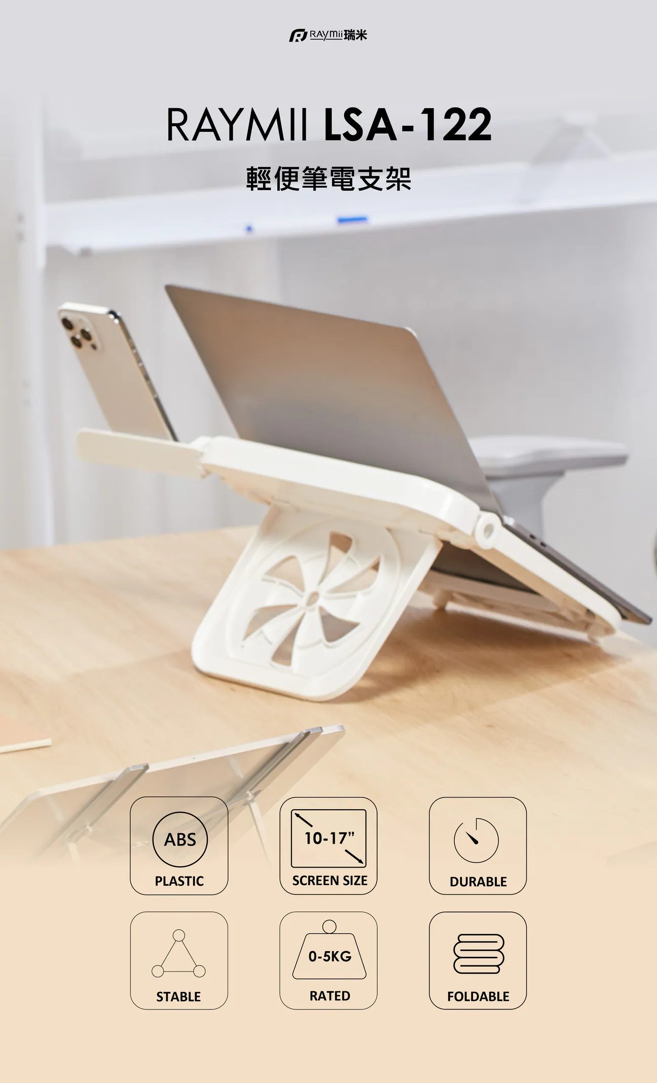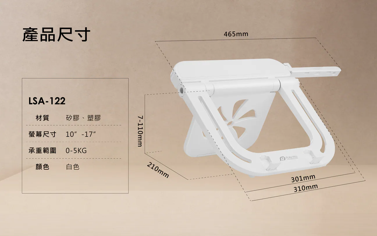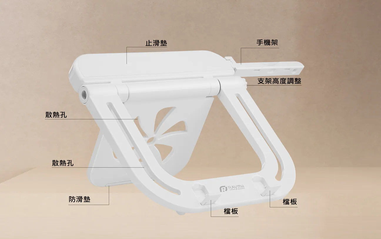 1. 筆電增高支架採用優質 ABS 材質,能夠穩固支撐大多數 10 吋至 17 吋的筆記型電腦和平板電腦