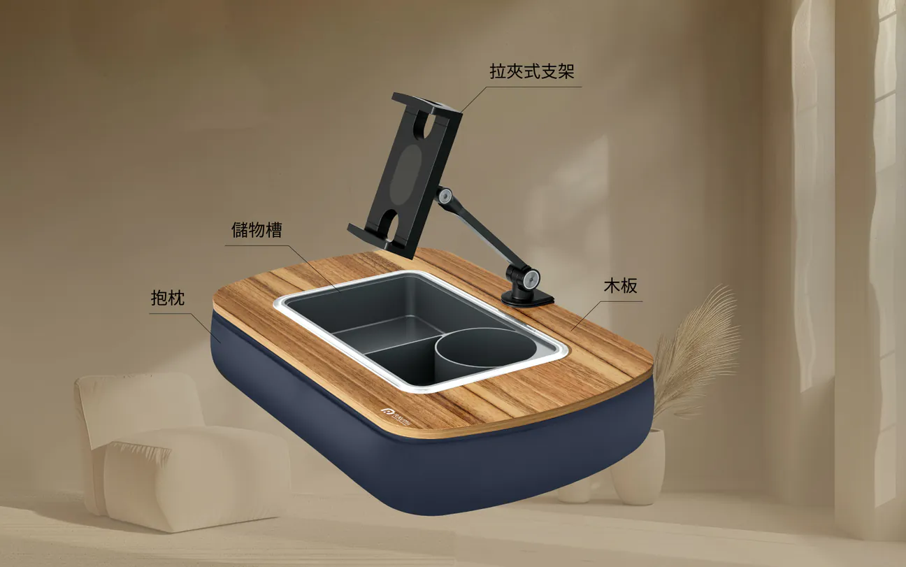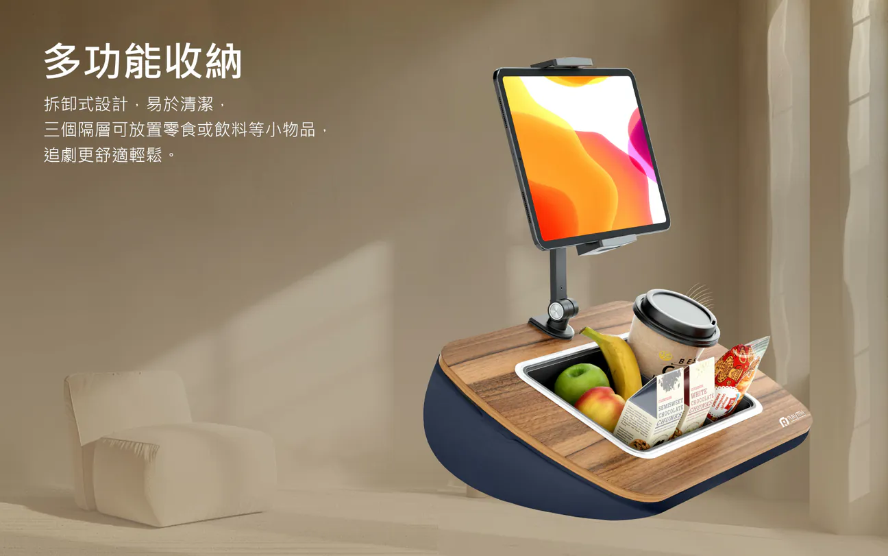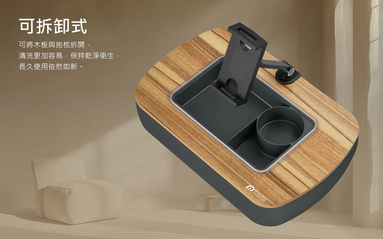 10. 托盤設計:托盤內建收納盒,可用於存放遙控器、藍牙耳機、零食和手機。木質表面易於清潔,豆袋蓋可以拆下並單獨清洗